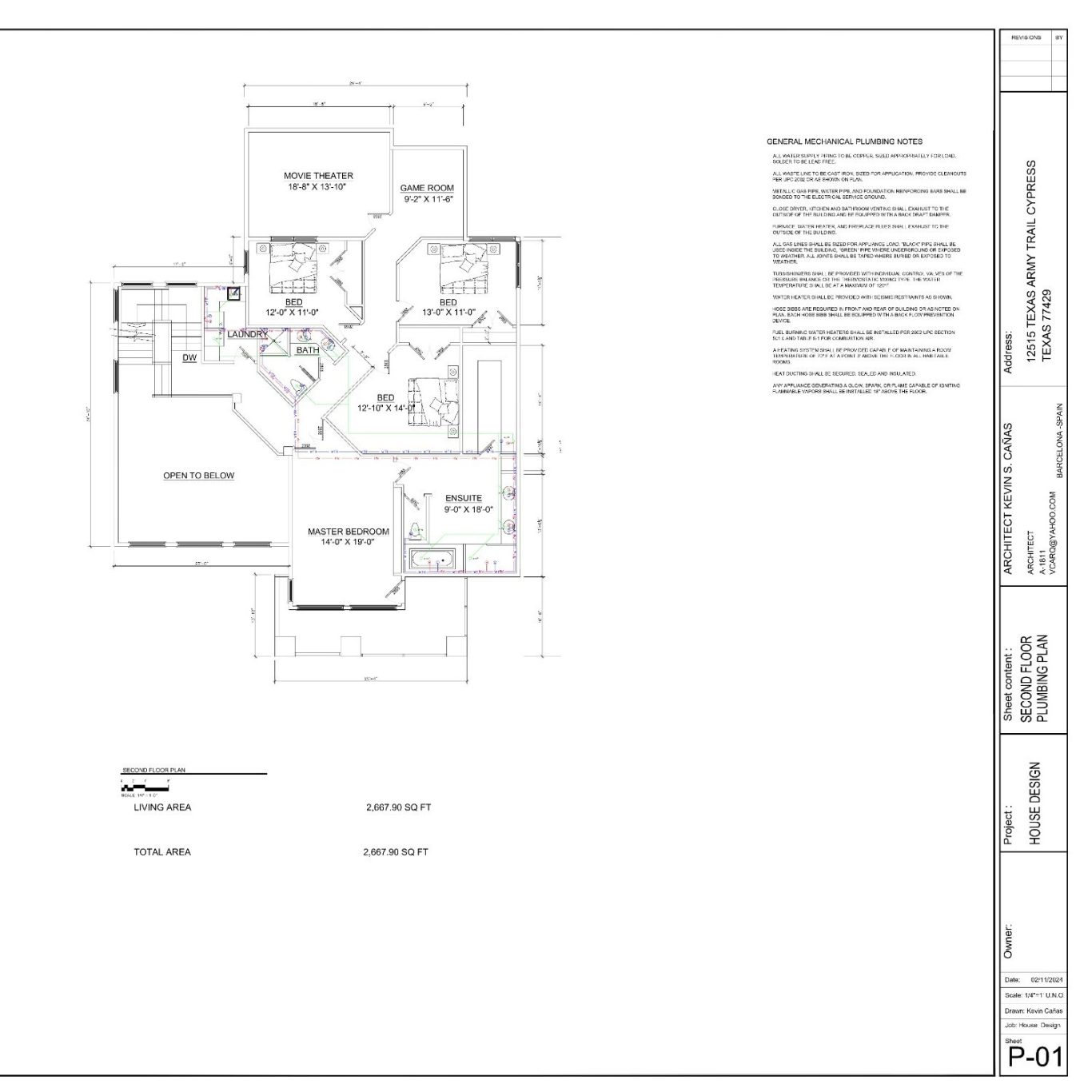 DISEÑO VIVIENDA UNIFAMILIAR CYPRESS, TEXAS (USA) PLANOS CONSTRUCTIVOS
